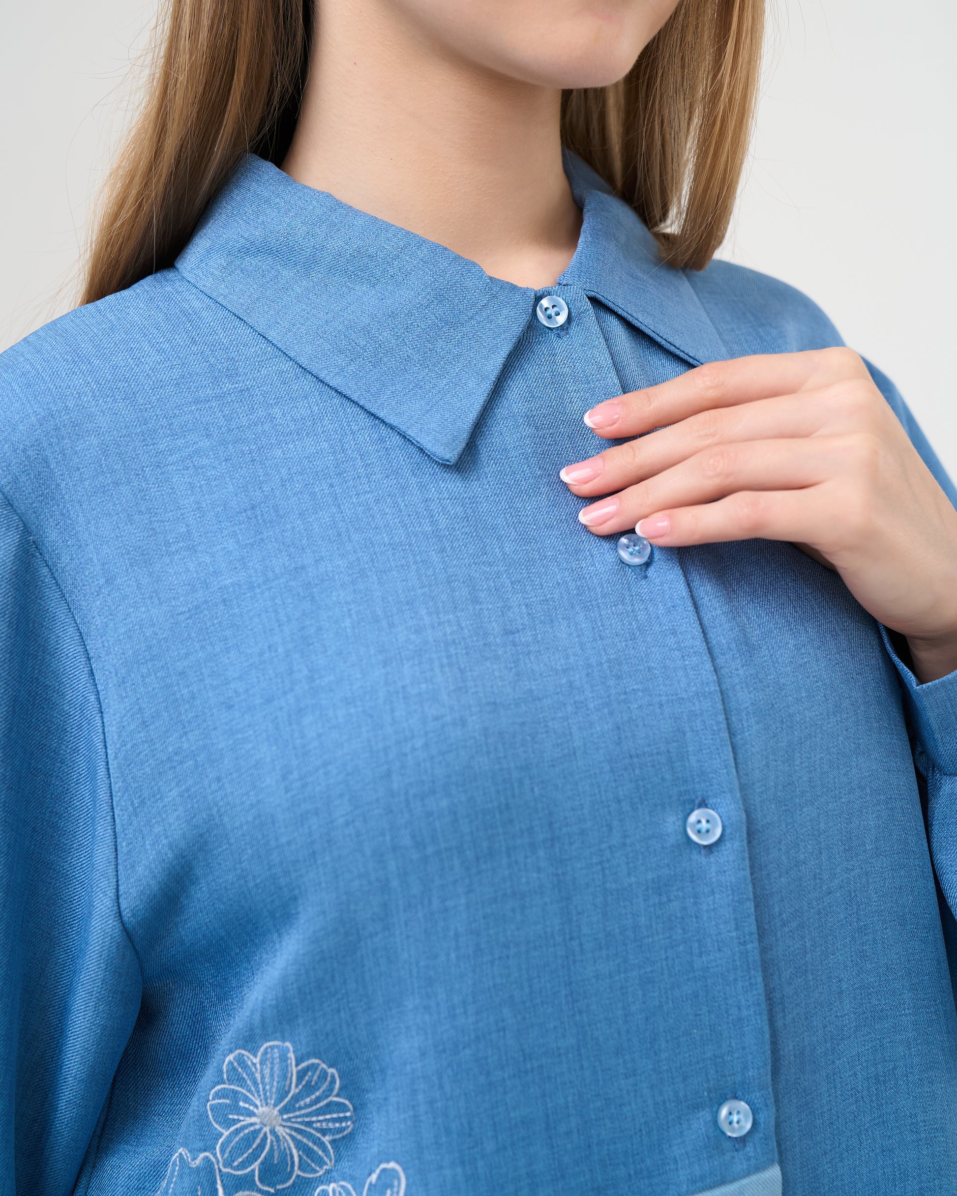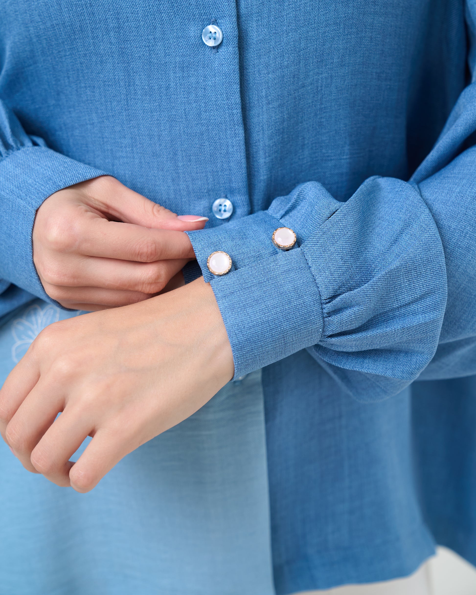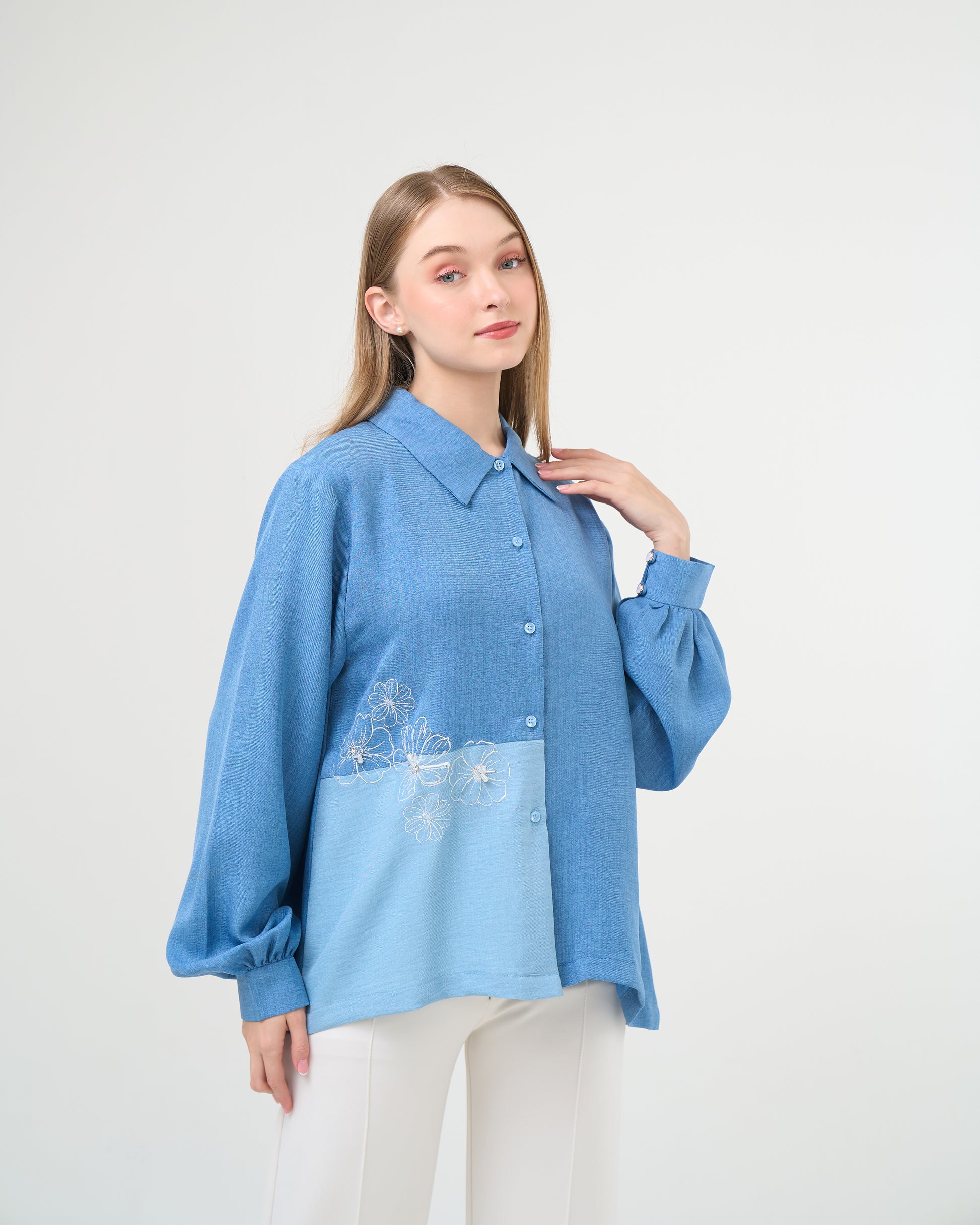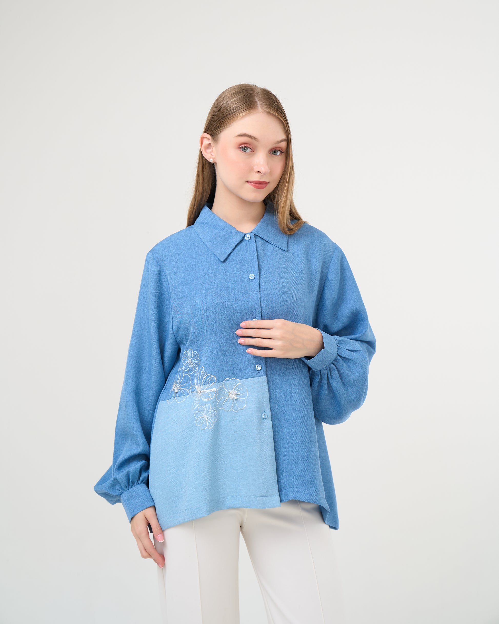 Light & Breathable: Terbuat dari bahan soft denim linen yang ringan dan nyaman. Elegance in Motion: Perpaduan detail bordir dan renda menghadirkan kesan anggun. Timeless: Warna biru yang klasik dan cuttingan yang stylish.