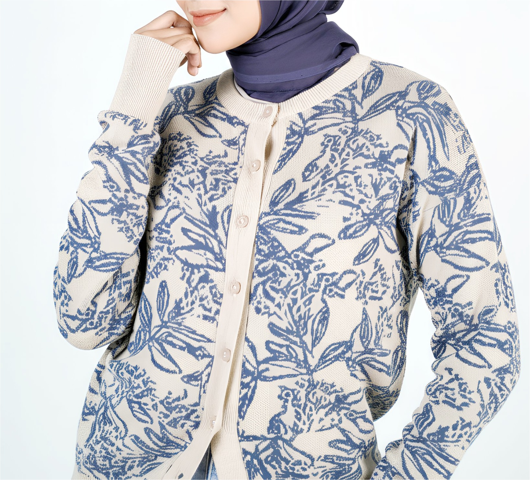 Gardigan dari bahan knitwear katun yang lembut memberikan sensasi hangat dengan detail printing elegan merupakan perpaduan sempurna antara kenyamanan dan keindahan, menjadikan pilihan ideal untuk tampil di berbagai kesempatan.